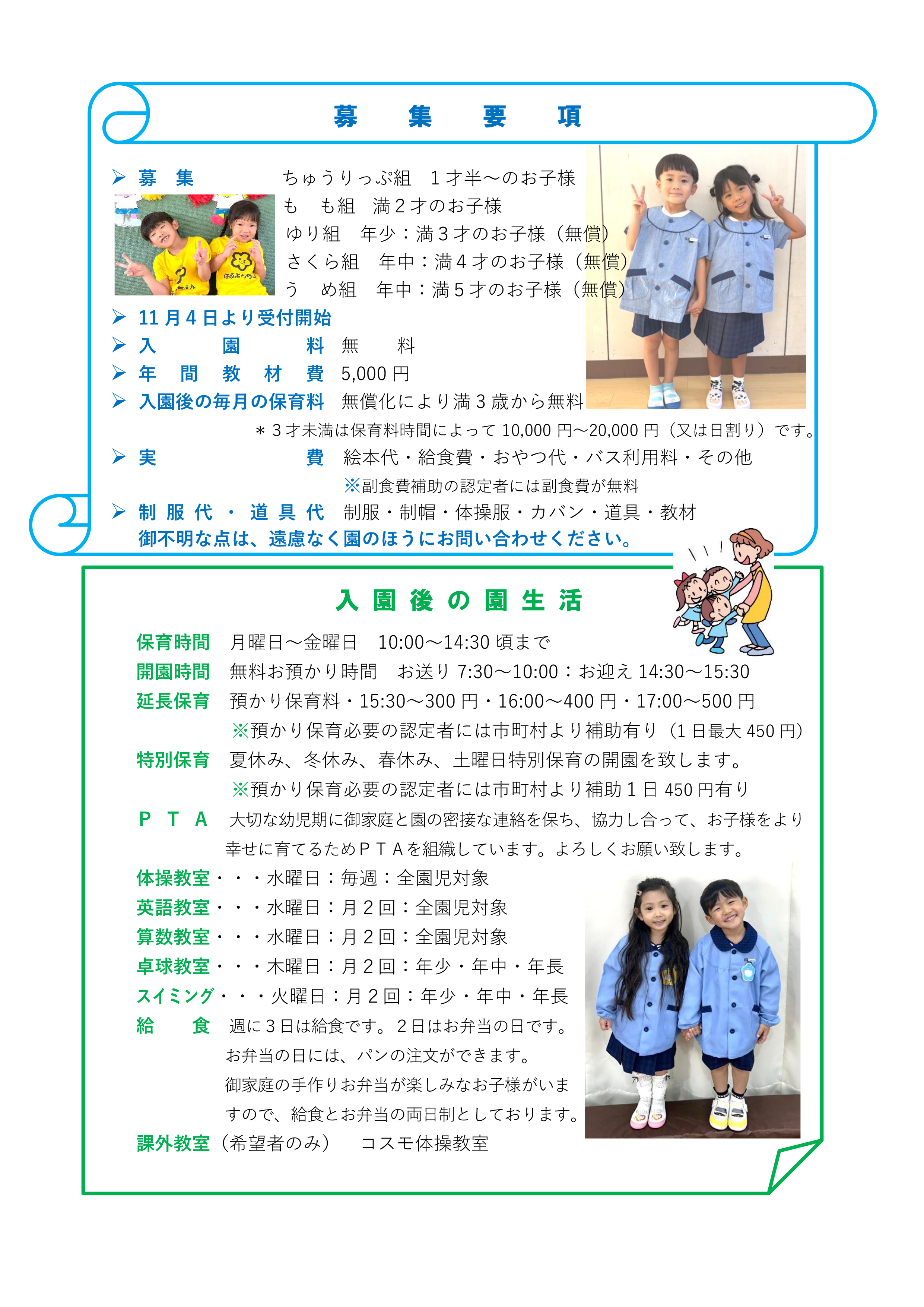 保育所・保育園からの転園も受け付けますのでご相談下さい。